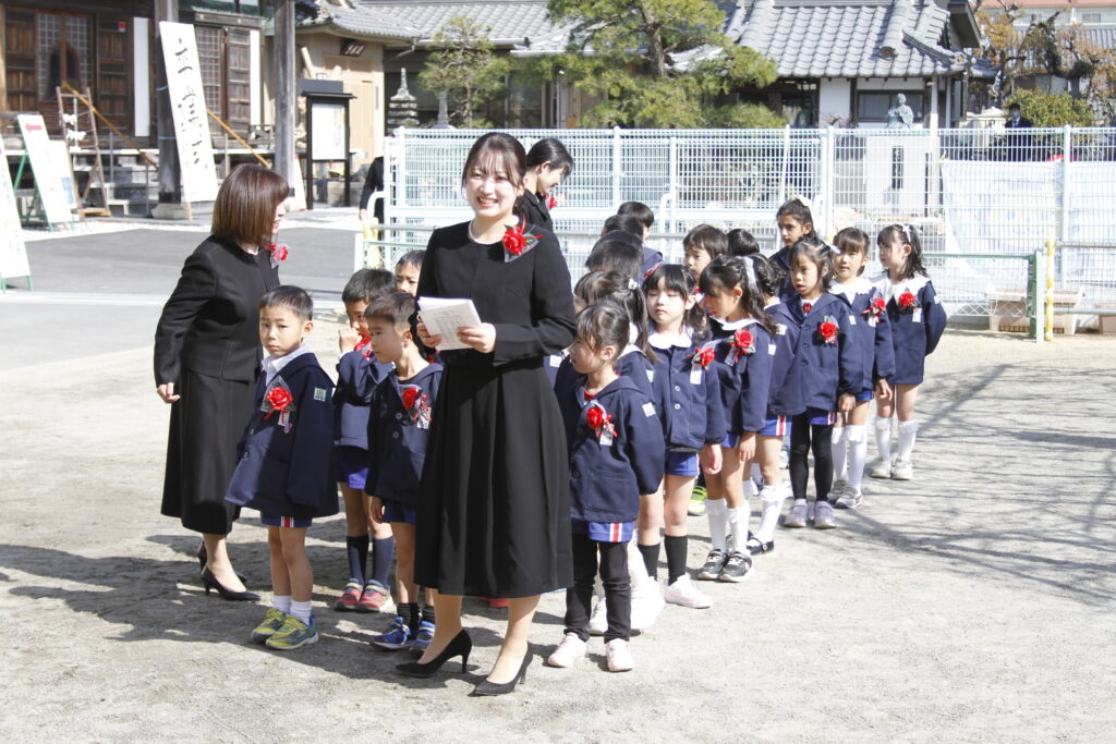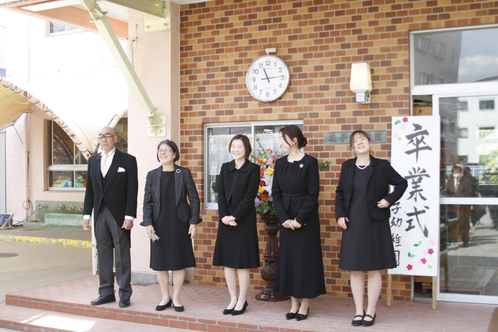 園長先生・主任に加え、満3歳児クラス&年少&年中の時にお世話になった担任が代表で受け取りました。