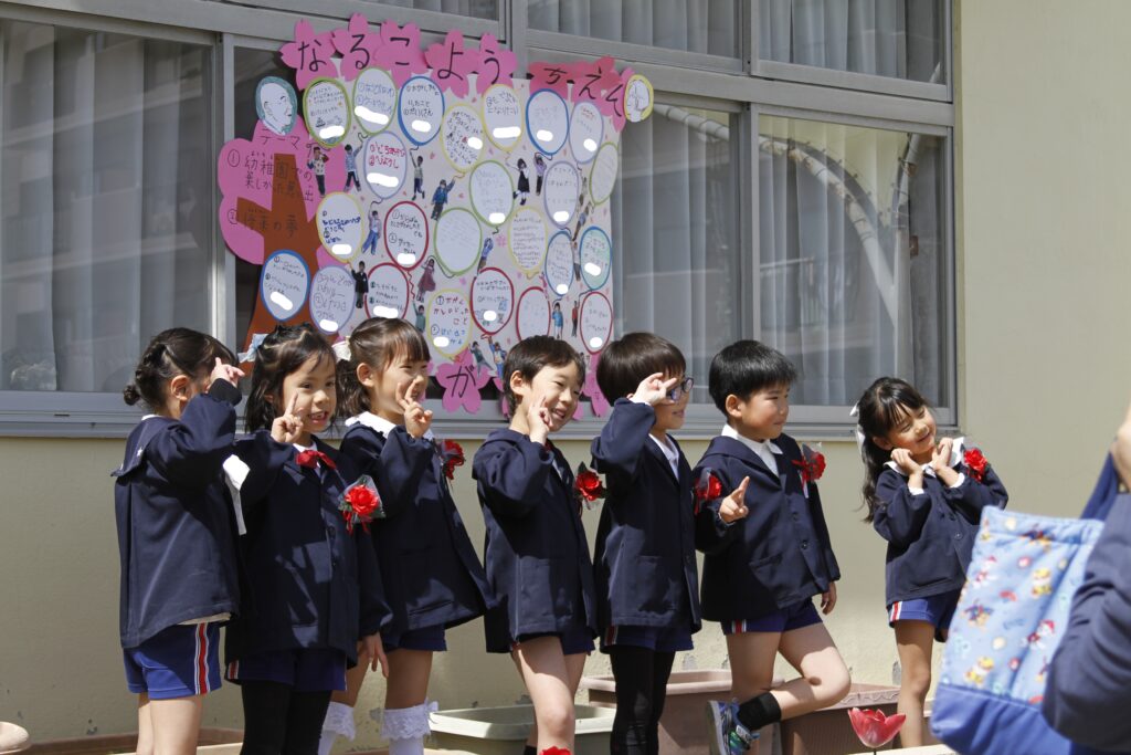 卒業式が始まる前に、園庭でお友達や先生たちと記念撮影✨